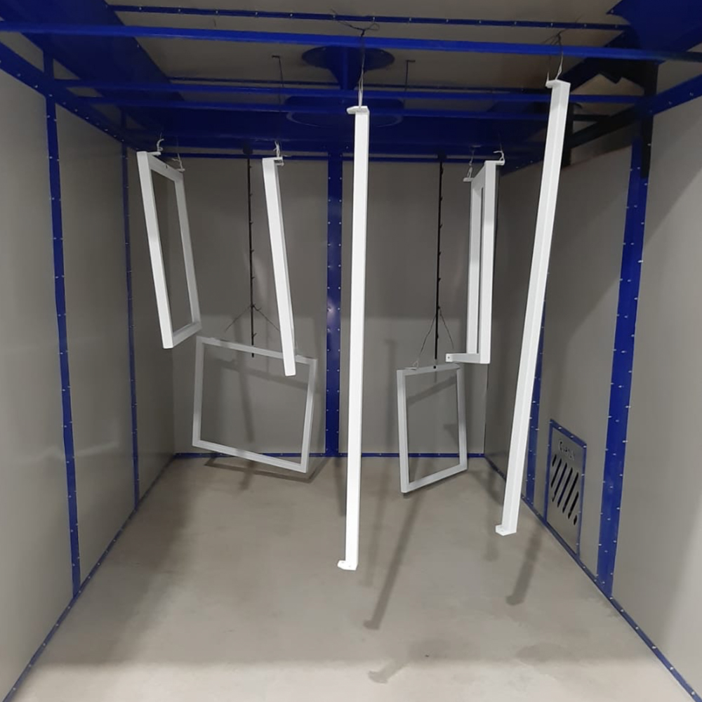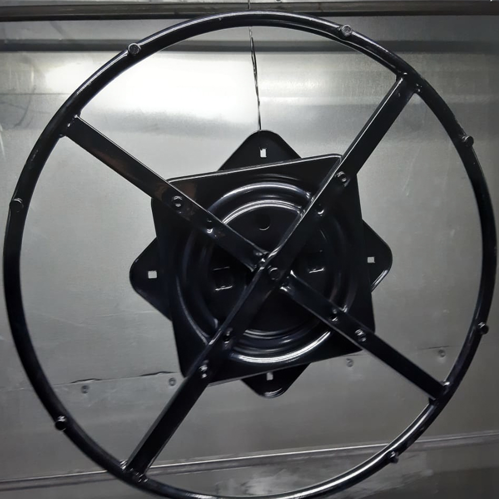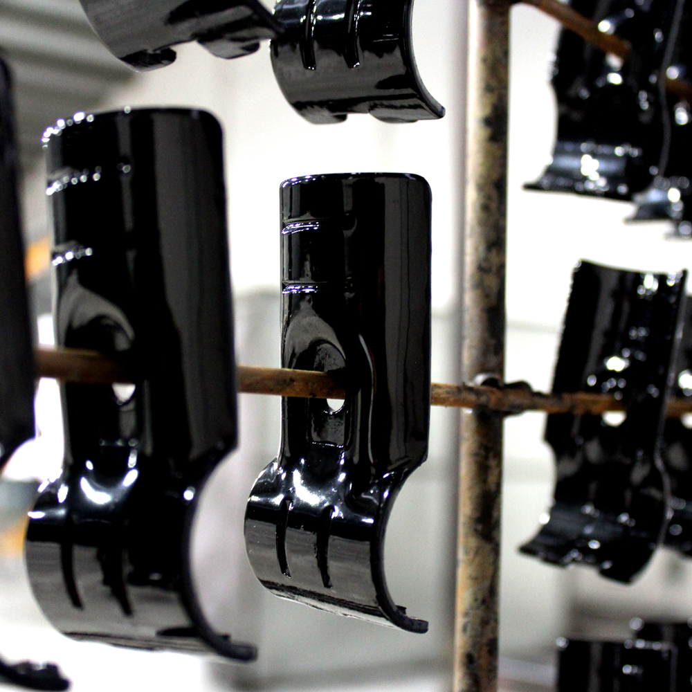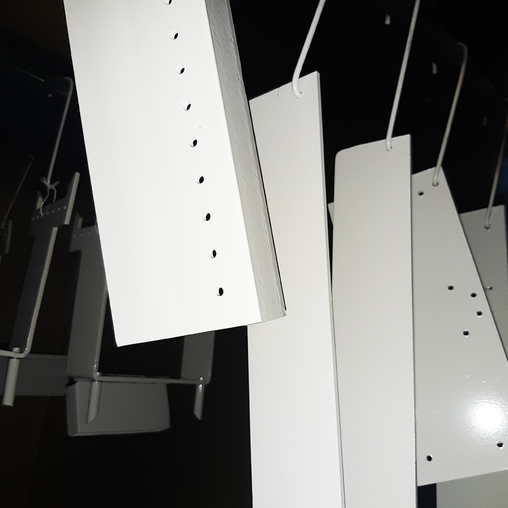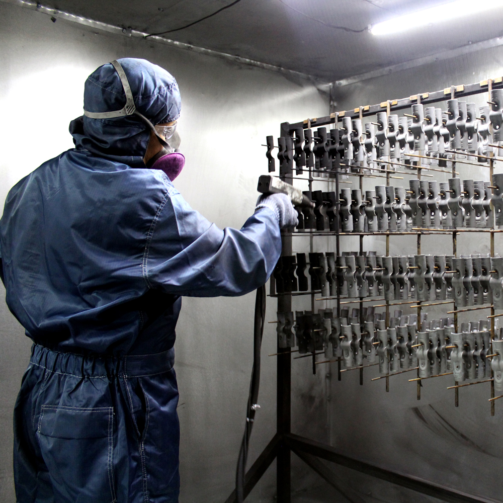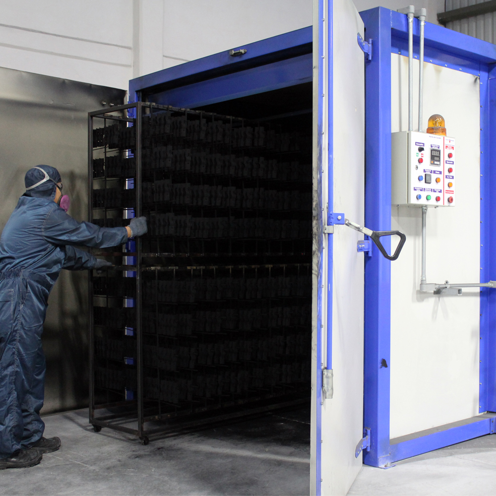 El proceso de pintado está basado de un polvo 100% sólido que se aplica por medios electrostáticos, en donde la superficie metálica actúa como un ¨imán¨ y así nos aseguramos que la pintura se deposita de manera uniforme en toda la superficie de la pieza.
